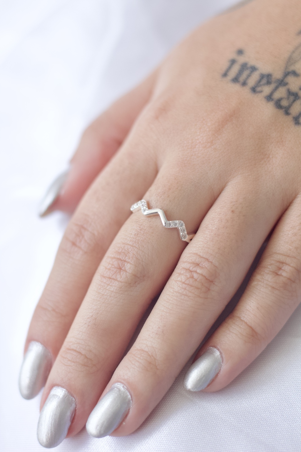 Anel em formato de zig zag com detalhes em zircônias de Prata 925.